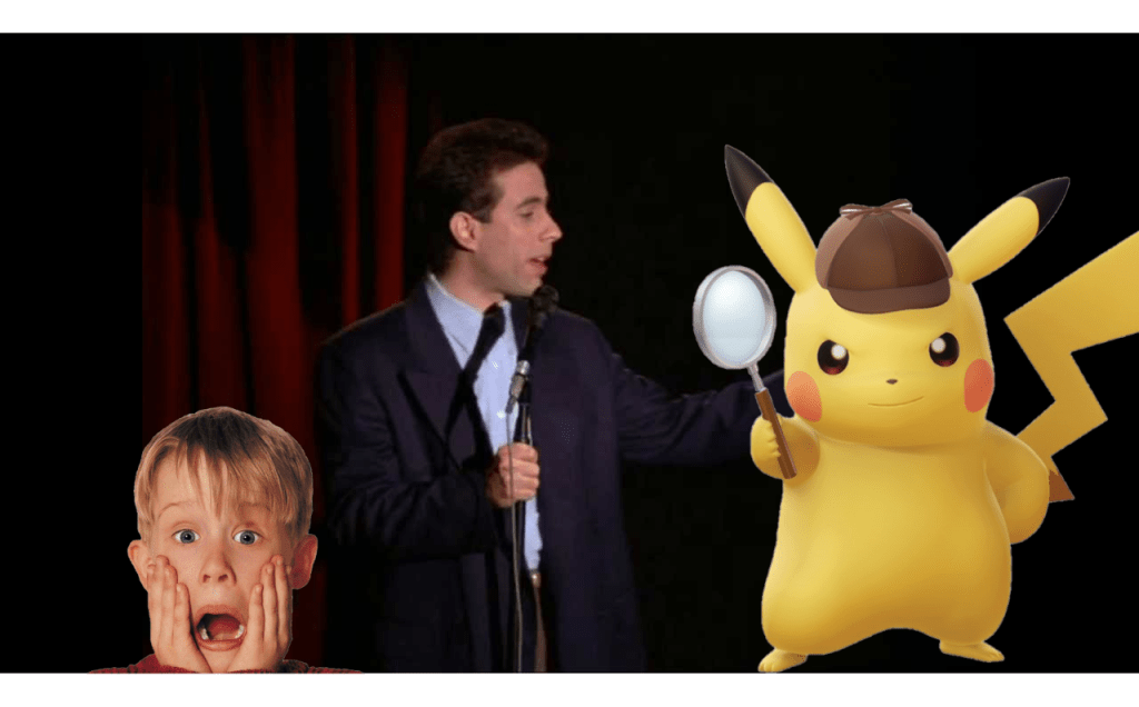Here’s the ticket: The phrase Serenity Now only entered the lexicon in the last twenty-some years. Where did it come from? Seinfeld, a show about nothing. Okay, so what does this mean? It means that Pikachu would have to exist in a world with Seinfeld, because there’s no other explanation for this phrasing’s inclusion in the film.